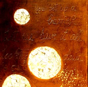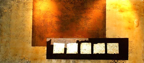 " Die Brücke" 100 x 100 cm Acrylfarbe, Sand, Strukturpaste fein, Ölkreide auf Leinwand Technik: gespachtelt, gestrichen, lasiert